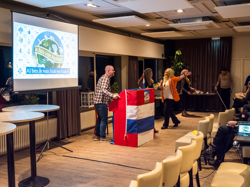 Daarna kwam de Feestcommissie Tollebeek even naar voren en lieten zij door middel van een filmpje weten wat het thema is voor komend Dorpsfeest Tollebeek: “Ik hou van Holland”. De Feestcommissie Tollebeek deed toen het verjaardagsspel en de ‘bom’ ontplofte bij Bert Jonkers. Het thema werd enthousiast ontvangen door de aanwezigen.
