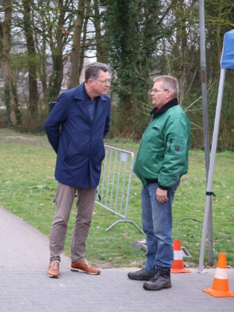 Burgermeester De Groot van de Noordoostpolder was bereid gevonden om het startschot te lossen. Om 11.00 uur werd dat gelost, dat wil zeggen de burgermeester zei zelf ‘pang’ want het pistool was tè goed gezekerd.